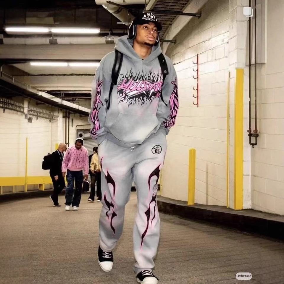 Hell Star 2025 Nuova Collezione Stile High Street Felpa con Zip Invernale Unisex 100% Cotone Lavaggio Acido Stampa Digitale