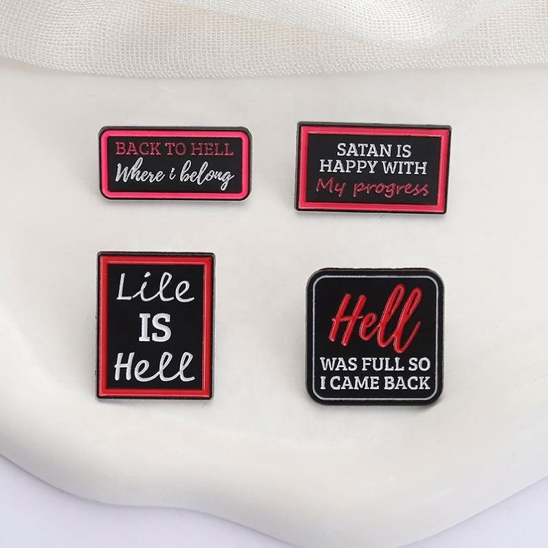 Spilla Smaltata 'L'Inferno Era Pieno, Così Tornai' con Citazione Divertente e Malvagia, 'Il Diavolo è Felice con il Mio Progresso', Distintivo da Bavero, Gioielli Regalo