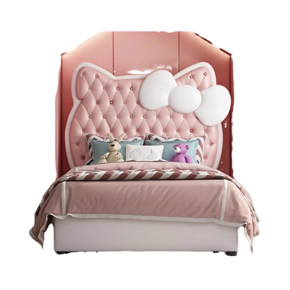 Hello Kitty letto per bambini Design rosa principessa delle ragazze con borsa morbida schienale comodo letto in pelle di legno per uso della Villa dell'hotel