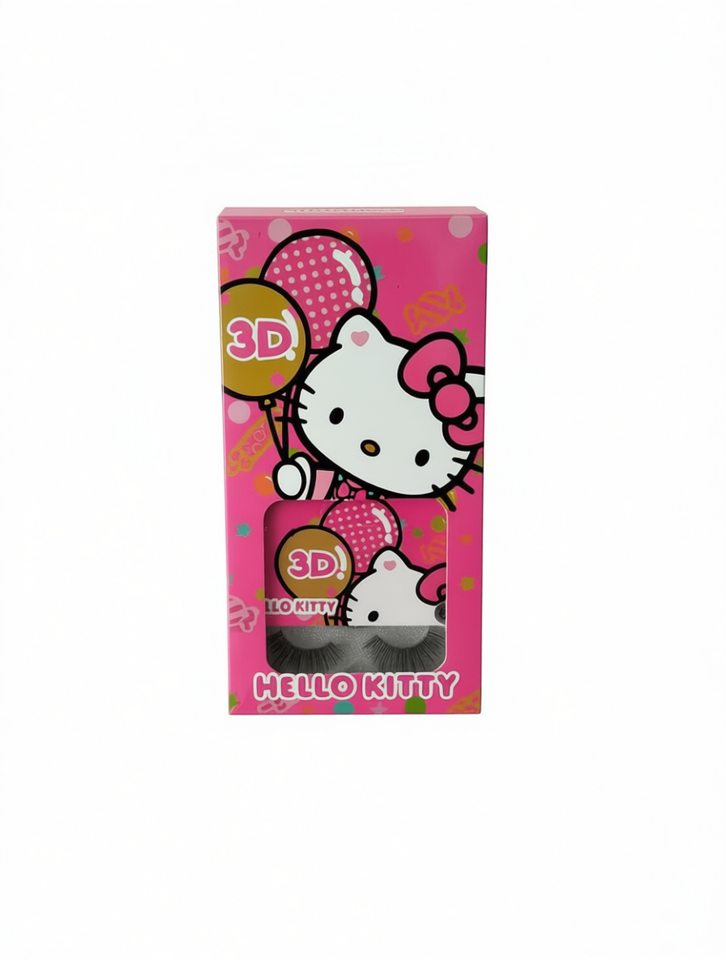 Ciglia Finte Hello Kitty JM-5 3D a Striscia Completa con Effetto Winged, in Fibra Sintetica Nera, con Fascia in Cotone, Curvatura D