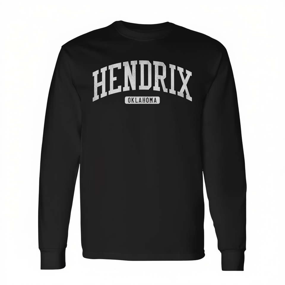 T-shirt a maniche lunghe Hendrix Oklahoma, abbigliamento unisex in stile college