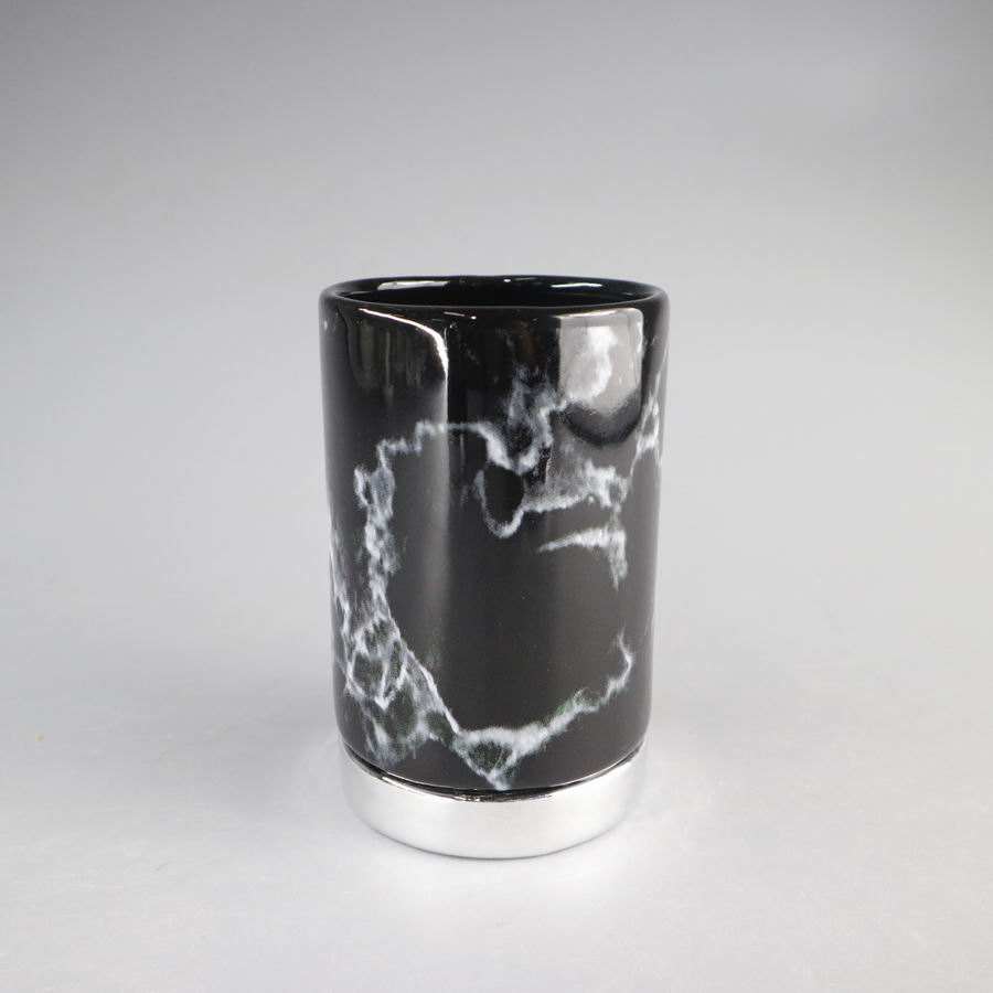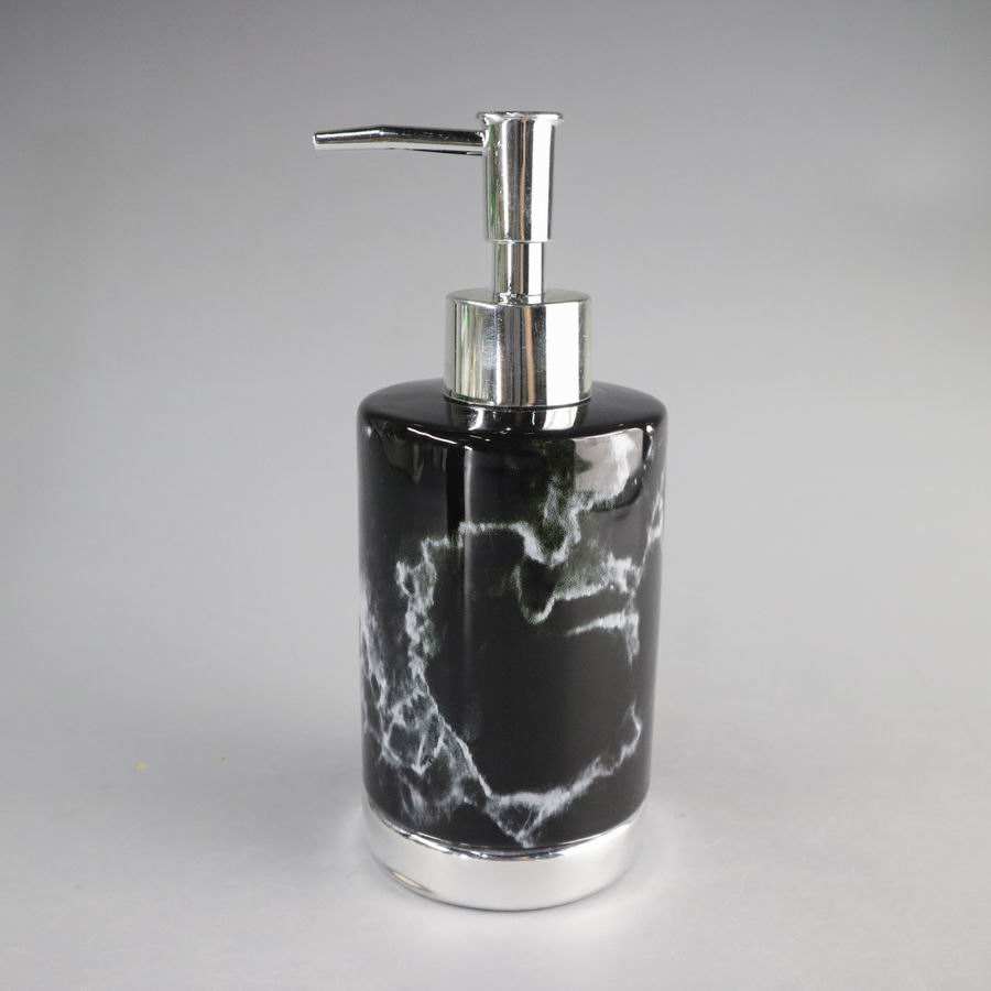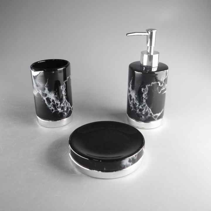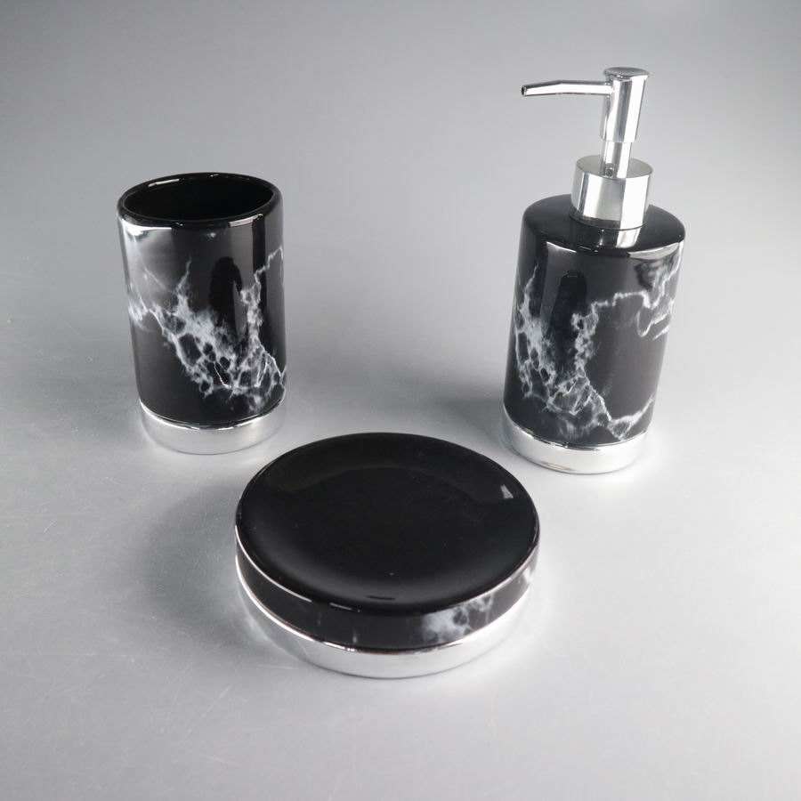 Set di Accessori da Bagno in Ceramica Porcellana Hengfei, 3 Pezzi, Design in Marmo Nero, Dispenser Sapone, Bicchiere, Portasapone