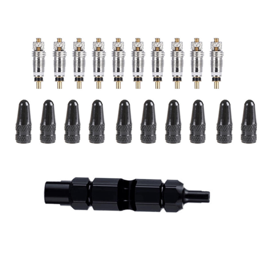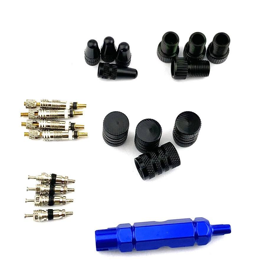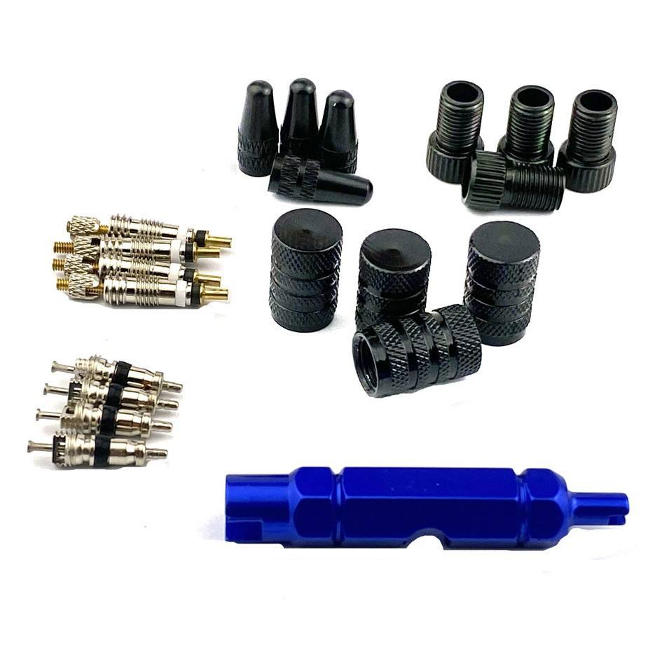 Set di Utensili Multifunzionali Hengtu | Set di 21 Pezzi: Valvole Presta/Schrader + Chiave + Tappi in Lega di Alluminio per Valvole Francesi