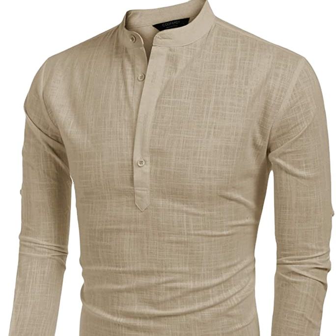 Henley Shirts Sale Mens Summer Clothing Linen Solid Color Short Sleeve Oversized Shirts for Men