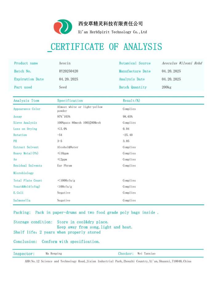 Specification:40% 20% Aescin