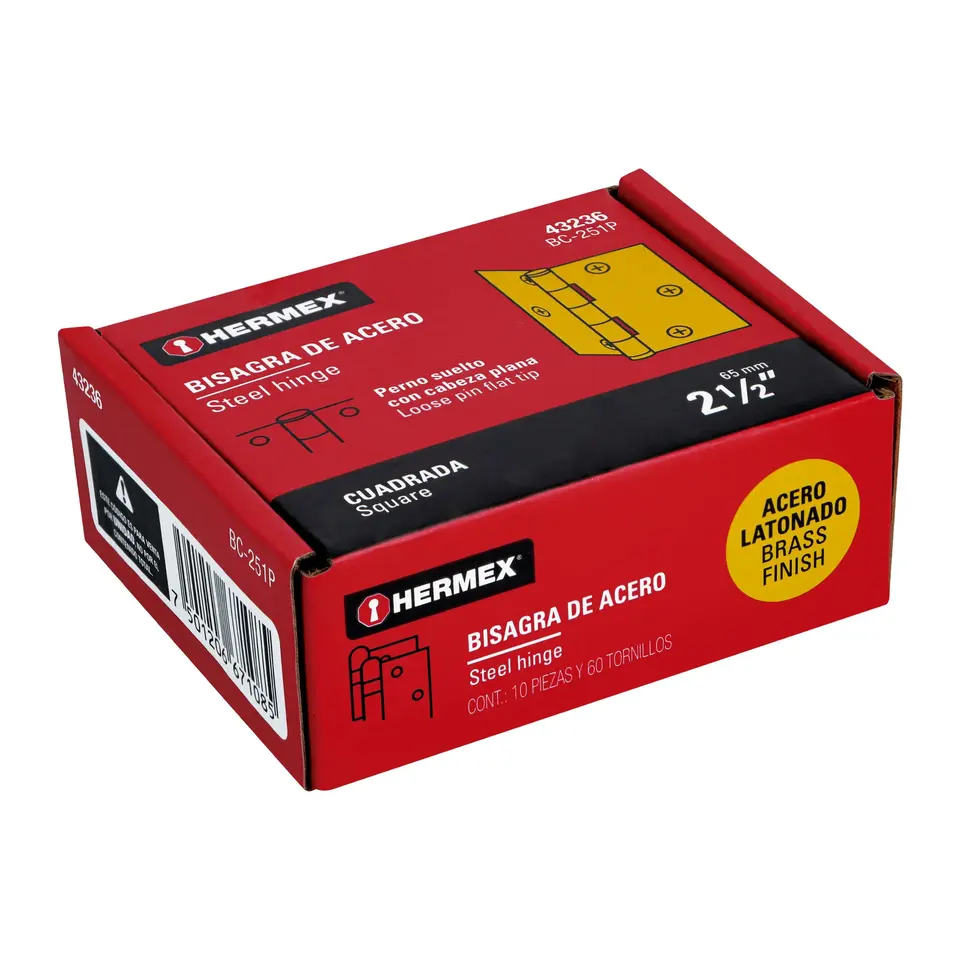 Hermex 2-1/2' Antique Brass Square Hinges Box of 10 Flat Head Stainless Steel Door Furniture Hinges for Kitchen Gym Applications