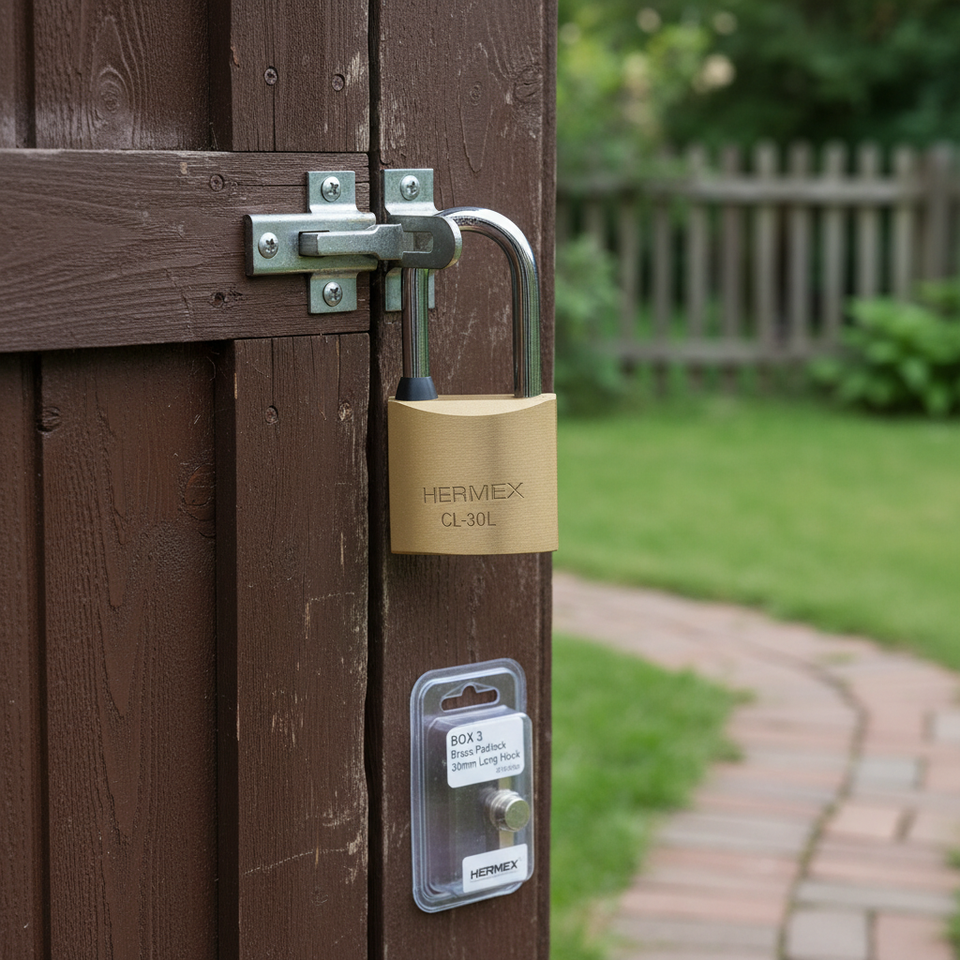 BOX 3 Brass Padlock 30mm Long Hook in Blister Pack, HERMEX
