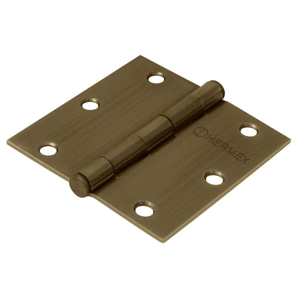 Hermex BC-352P 3-1/2\" Antique Brass Plated Steel Flat Furniture Hinge Square Hinge
