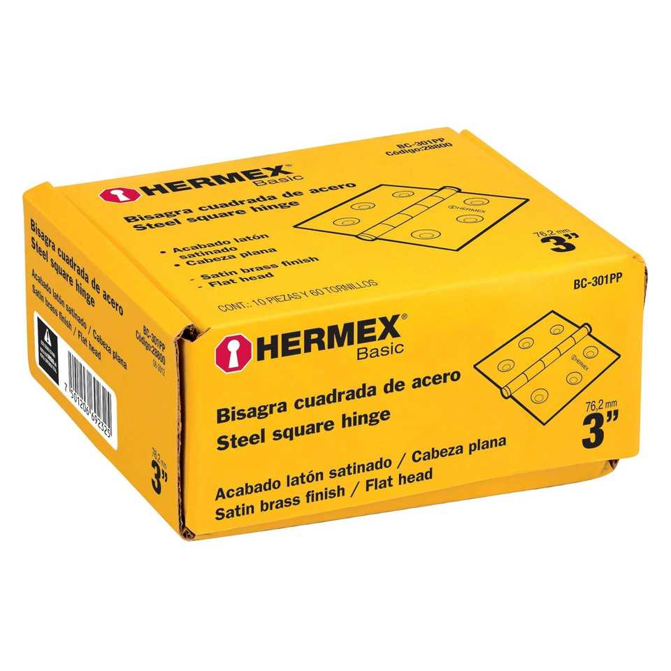 Hermex Basic BC-301PP 3' Square Hinge Brass Plated Steel Flat for Furniture Quality Hinges