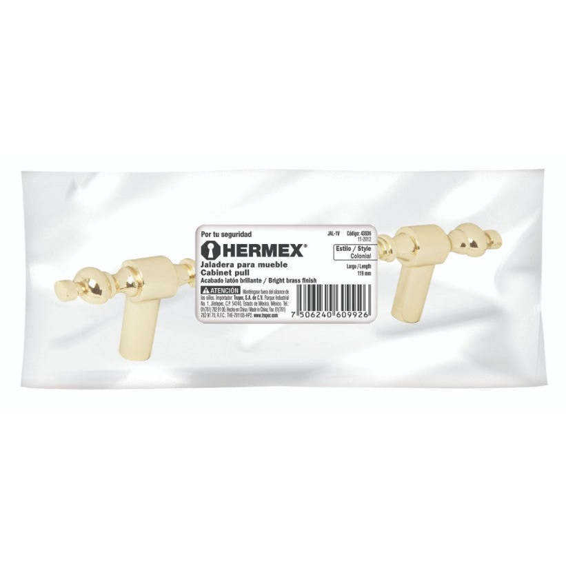 Hermex JAL-0521 Antique Colonial Style Bar Handle 128mm Bright Brass Aluminum Alloy for Cabinets Closets Wardrobes Drawers Kitch