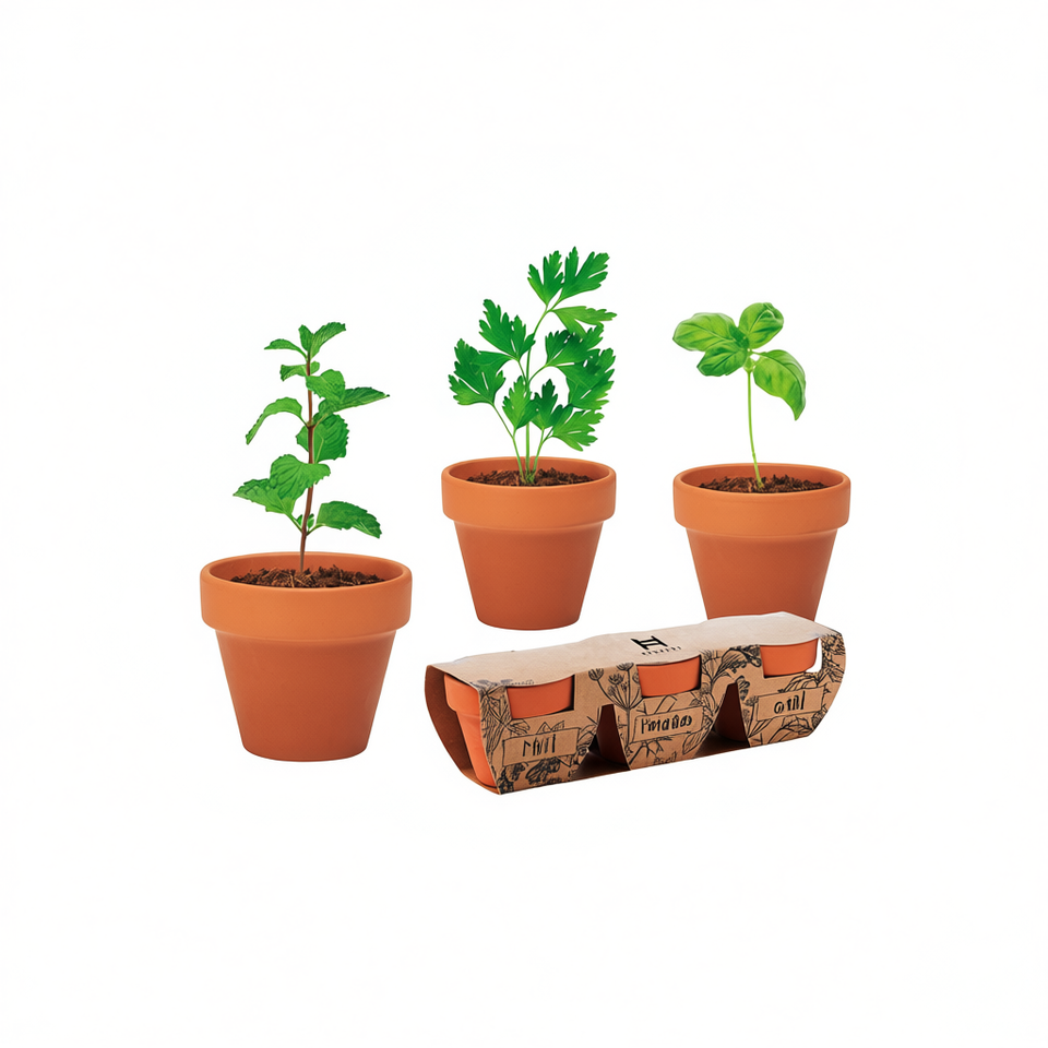 Herms Herb Garden Set With Mint Parsley Basil In Terracotta Pots For Indoor Outdoor Use