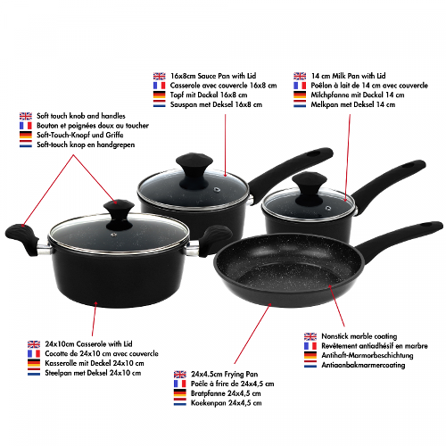 Herzberg 7-Piece Marble Coated Cast Iron Cookware Set Kitchen & Tableware
