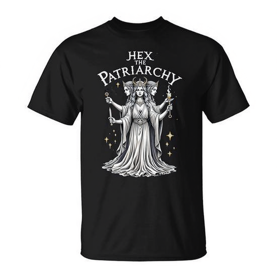 T-shirt da donna Hex The Patriarchy, nera, taglia media, girocollo, manica corta, design con stampa serigrafica a tema strega e femminista