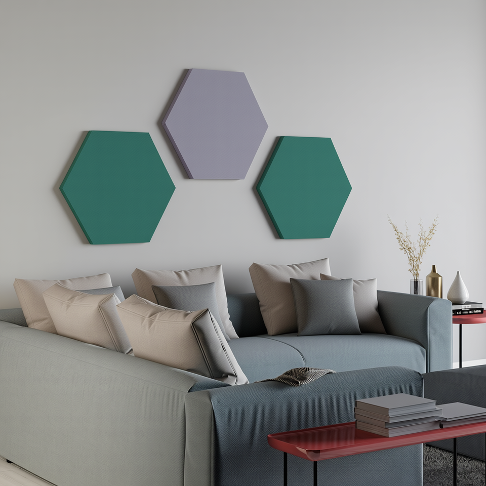 Pannello Acustico Esagonale Fonoassorbente in Fibra di Poliestere 100% Design Minimalista NRC 0.5 per Arredamento Soggiorno