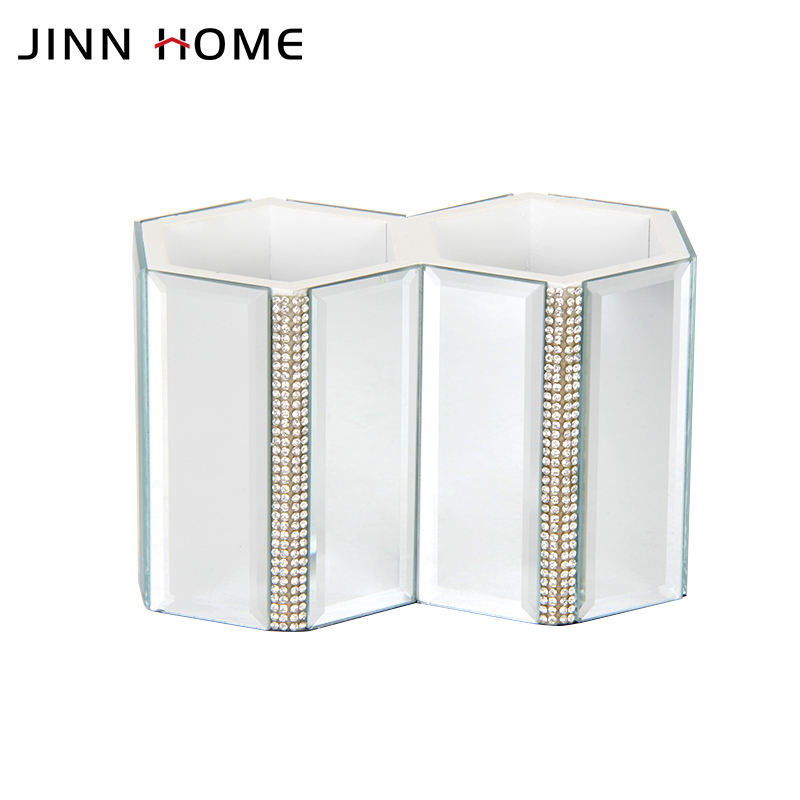 Hexagon Glass Makeup Brush Holder Aluminum Home Decorative Organizer for Cosmetics Eyeliners Display Cup Jewelry Boxes Storage
