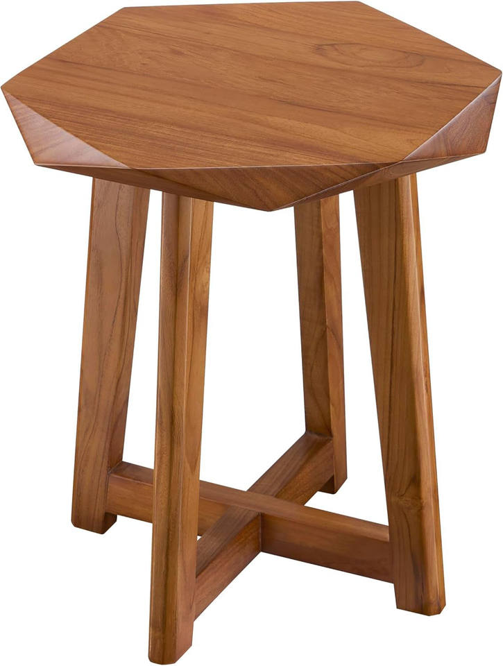Tavolino Esagonale in Legno Massello - Tavolino Laterale Moderno Minimalista per Soggiorno, Tavolino Decorativo in Legno Naturale con Design a Base a X