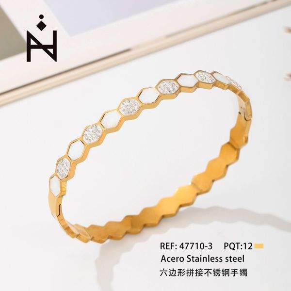 Bracciale Esagonale in Acciaio Inossidabile Placcato Oro con Intarsi in Cristallo, Braccialetto alla Moda