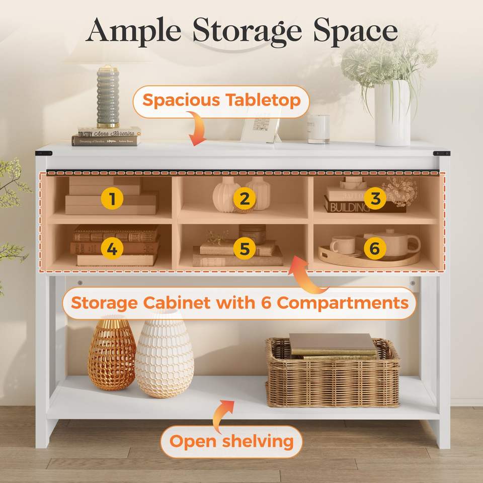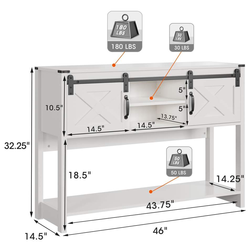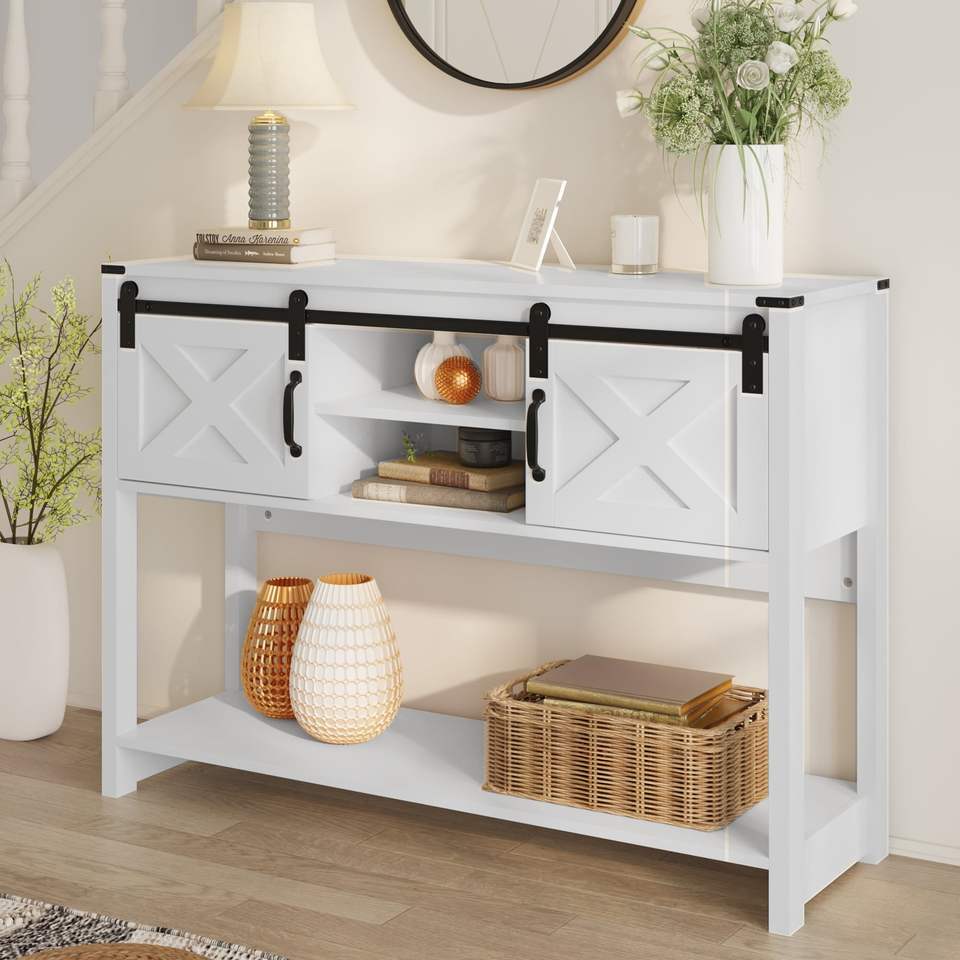 Heynemo Tavolo Consolle Rustico in Legno da 46 Pollici con Porta Scorrevole Stile Fienile, Tavolo da Ingresso/Divano Regolabile Stile Fattoria con Cassetti