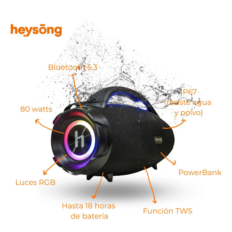 Heysong Bang Altoparlante Portatile Impermeabile IPX6 con Potenza di Uscita 50W TWS Nero