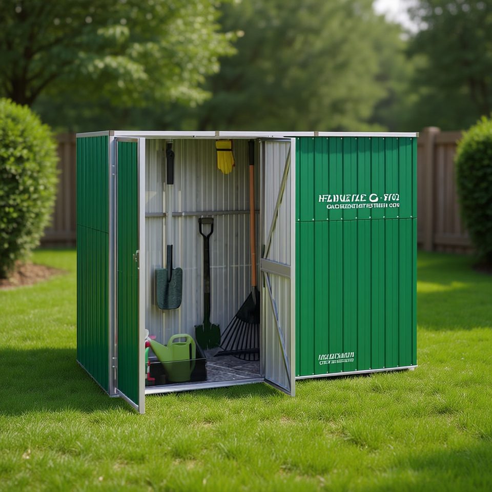 Hfluele O-Sm Green Galvanized Steel Garden Shed 88.6x35x63.4 In Storage Tool House