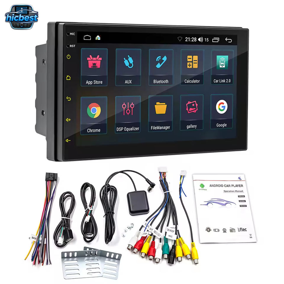 Hicbest AI Autoradio Android 2 Din 7 Pollici con Lettore DVD, 4GB RAM 64GB ROM, BT, FM, Processore di Segnale Digitale, Multimedia per Auto con Funzione di Retromarcia