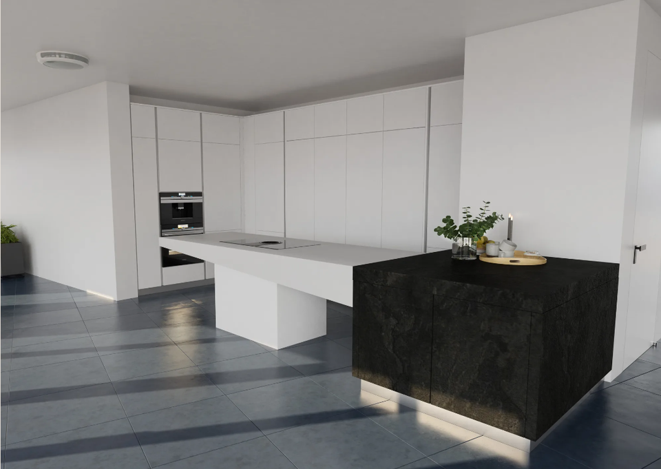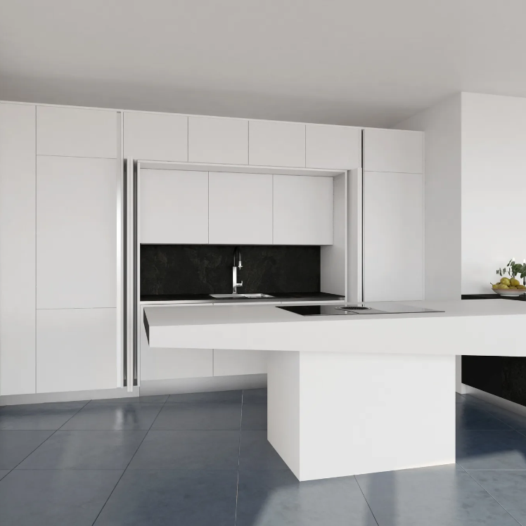 Hideaway Ceramic Kitchen Cabinet with Peninsula