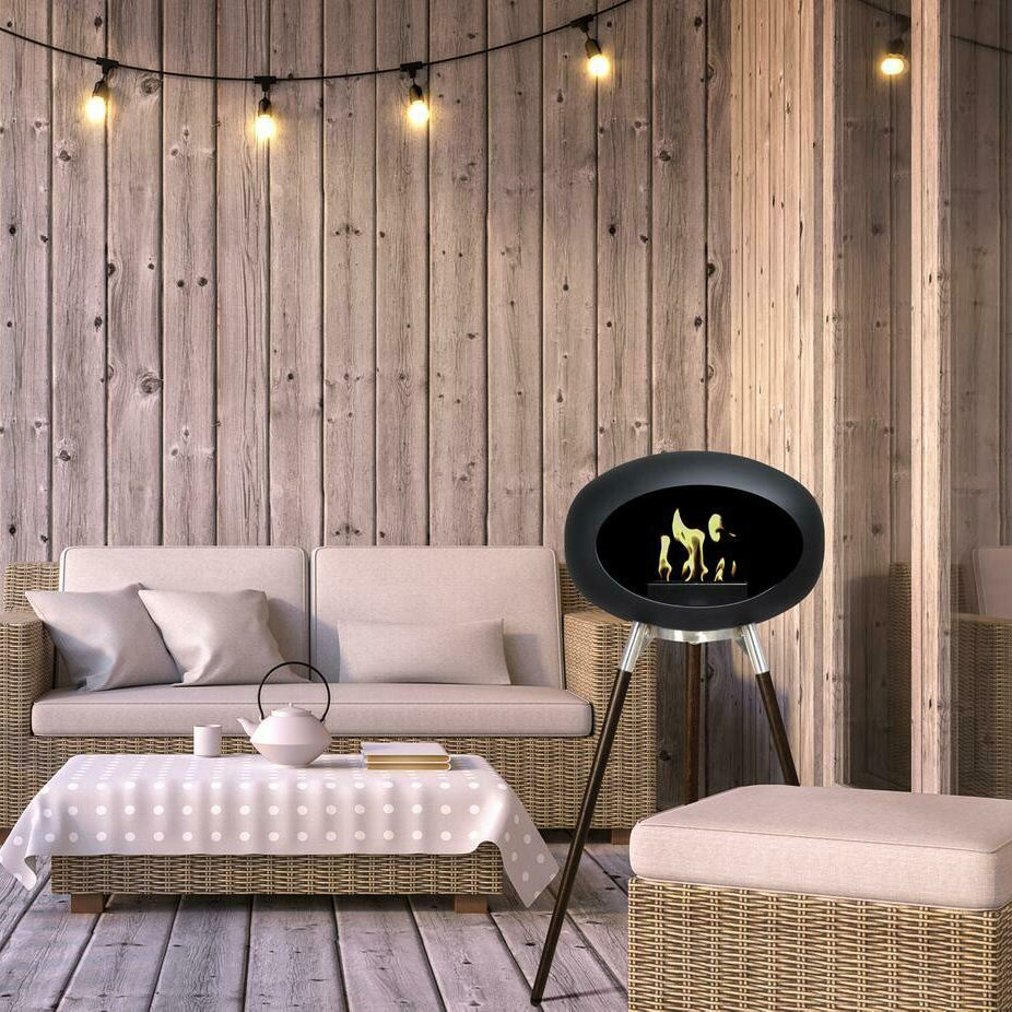 Camino a treppiede a bioetanolo alto 32.3 'supportato, aggiunge uno stile distintivo al calore e all'atmosfera creati dalla cupola del fuoco