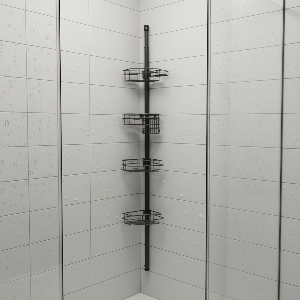 Shower Corner Caddy 42 to 114 Inch 4 Tier Rust Proof Tension Pole Bathroom Shelves Corner Mounted Stainless Steel