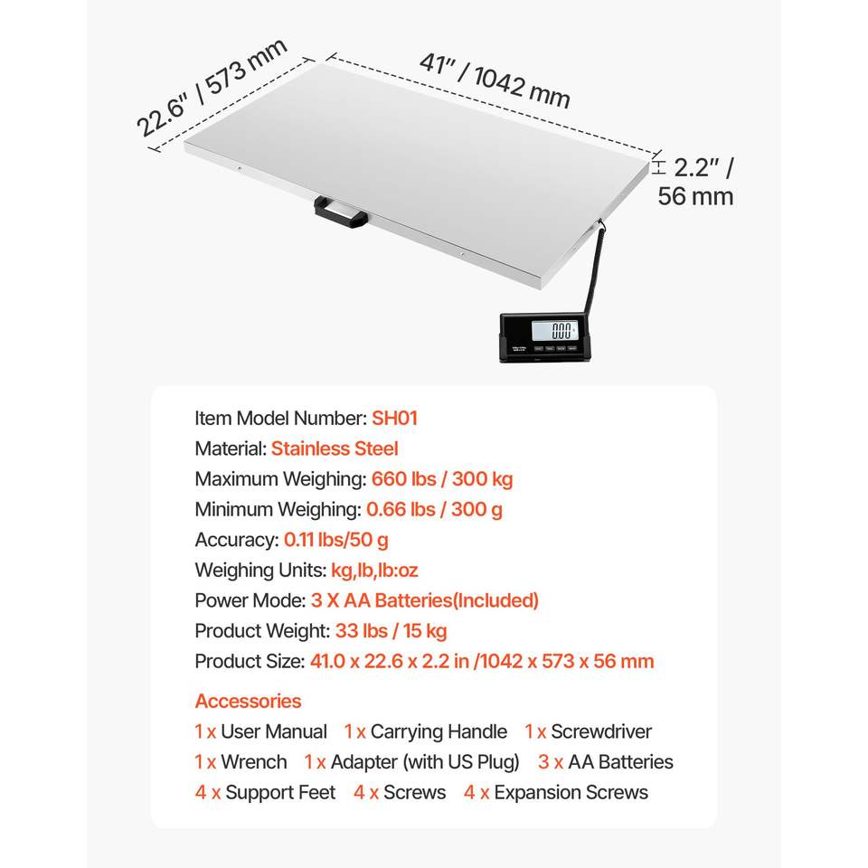 Bilancia Digitale di Alta Precisione per Spedizioni 0.1-660 Libbre, Bilancia Postale con Display LCD, Funzione Hold/Tare, Alimentazione AC/DC per Bagagli
