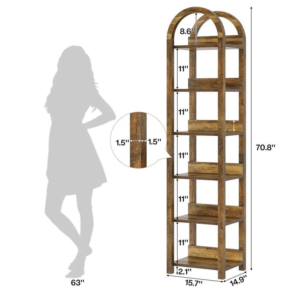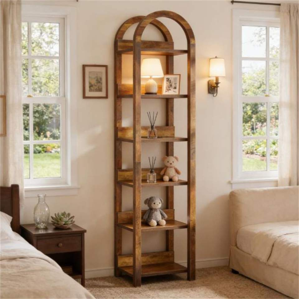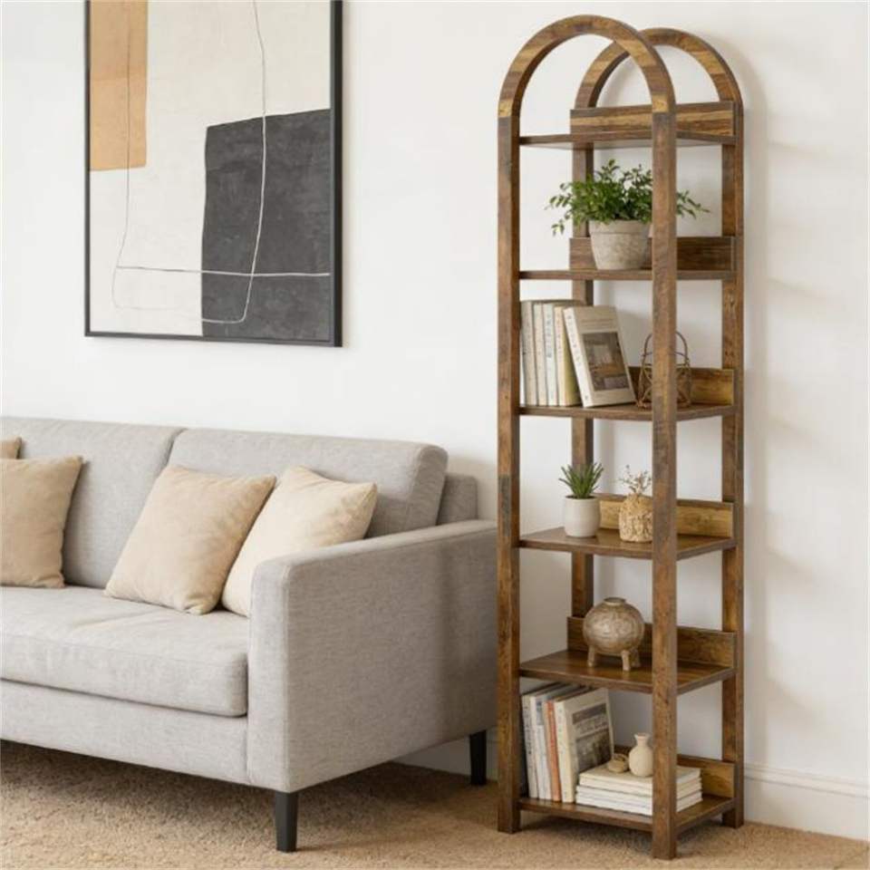 Libreria ad Arco Alto con Scaffale Aperto e Porta Piante, Eleganti Librerie per Ufficio Domestico