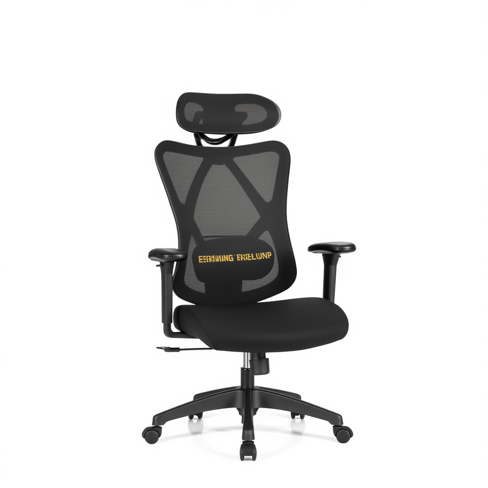 Sedia da Ufficio Direzionale con Schienale Alto, Materiale in Rete, Supporto Lombare Regolabile, Poggiatesta Integrato, Base Girevole, Nera