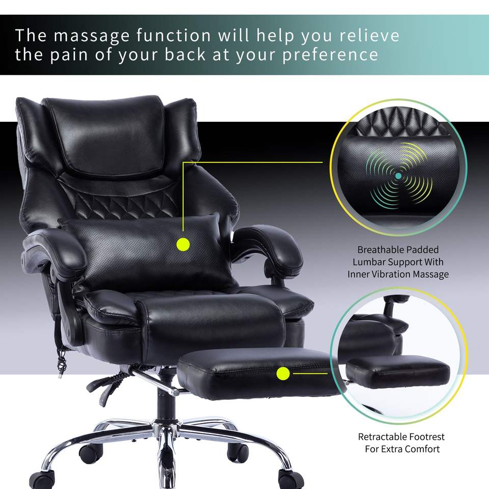 High Back Executive Office Chair with Massage & Reclining Feature Home Computer Desk Chair Featuring Lumbar Cushion Footrest