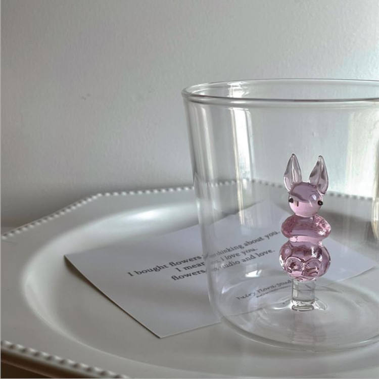 Borosilicato alto 3D simpatico cartone animato coniglio bicchiere tazza di borosilicato alto succo di tè latte domestico per bambini tazza di caffè per la colazione