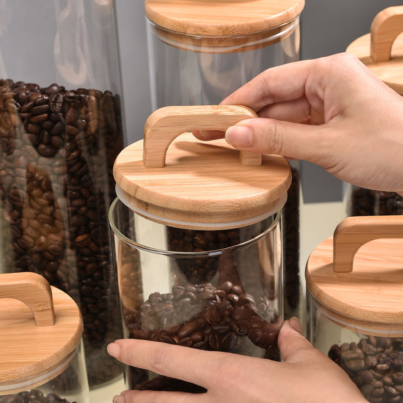 High Borosilicate Glass Jars Airtight Bamboo Lids Large Clear Food Canister for Coffee Bean Storage for Home Kitchen Storage