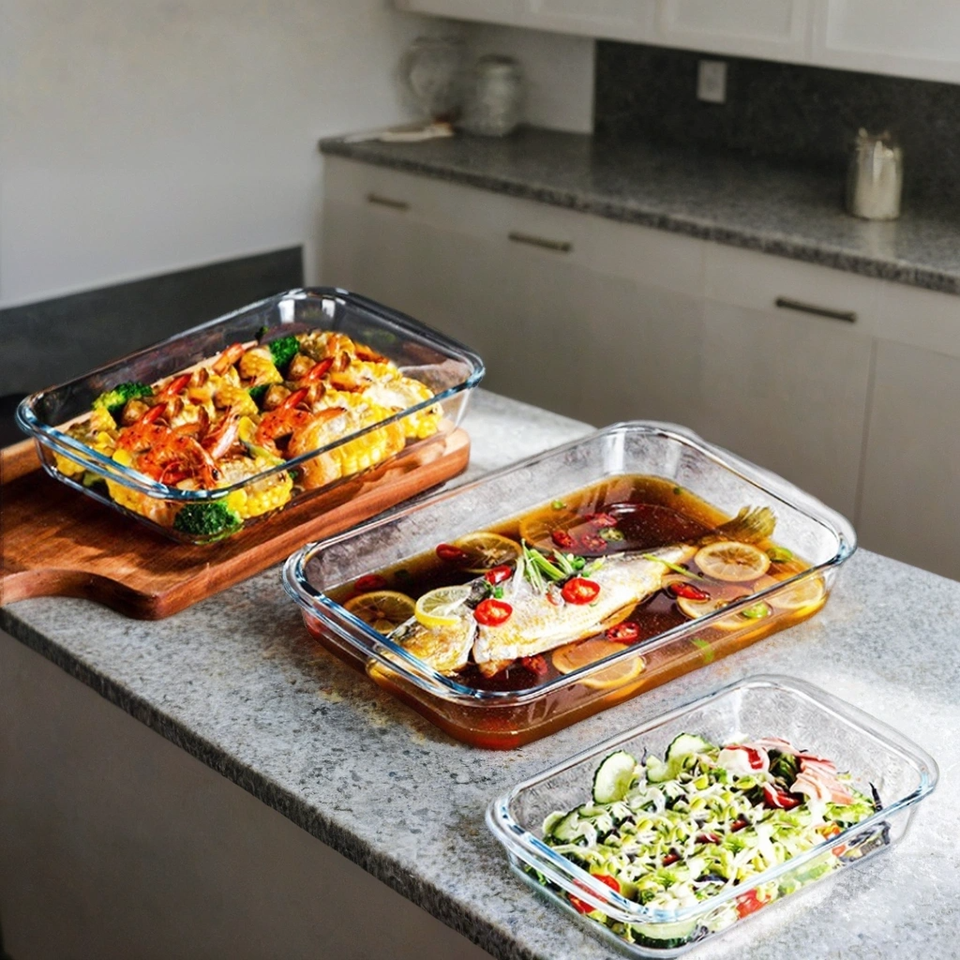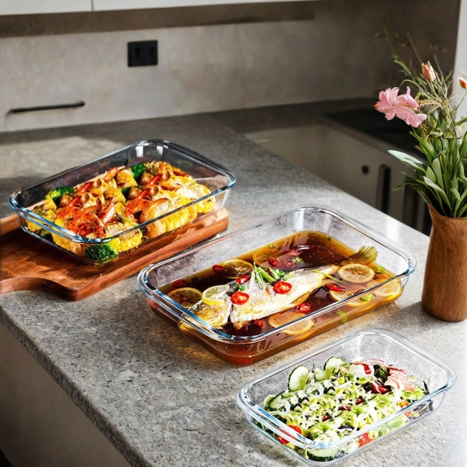Teglia Rettangolare in Vetro Borosilicato Soffiato a Mano, Multiuso, Varie Misure, per Pizza e Torte, 100 Pezzi, Lavabile in Lavastoviglie
