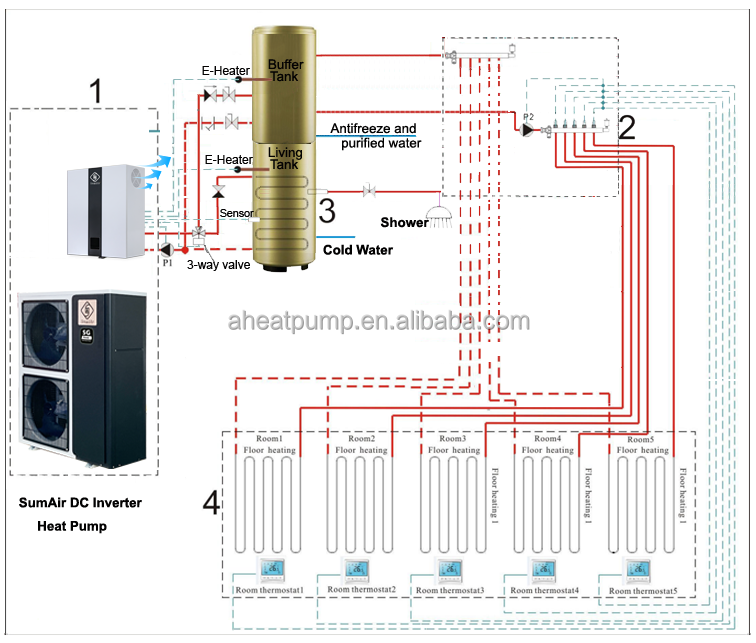High COP 75d A +++ piano acqua calda riscaldato 14 kw10 riscaldamento del radiatore A buon mercato R290 Modulare DC convertitore sorgente aria riscaldatore pompa Boiler -30