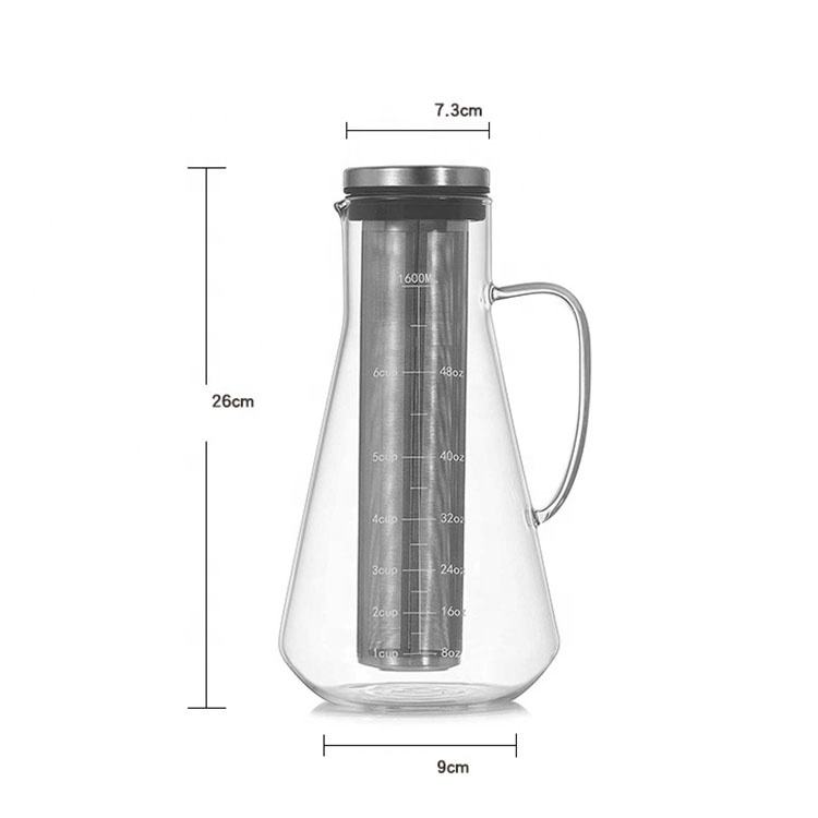 Caffettiera a freddo in vetro con filtro in acciaio inossidabile portatile resistente al calore 1.6L ad alta capacità