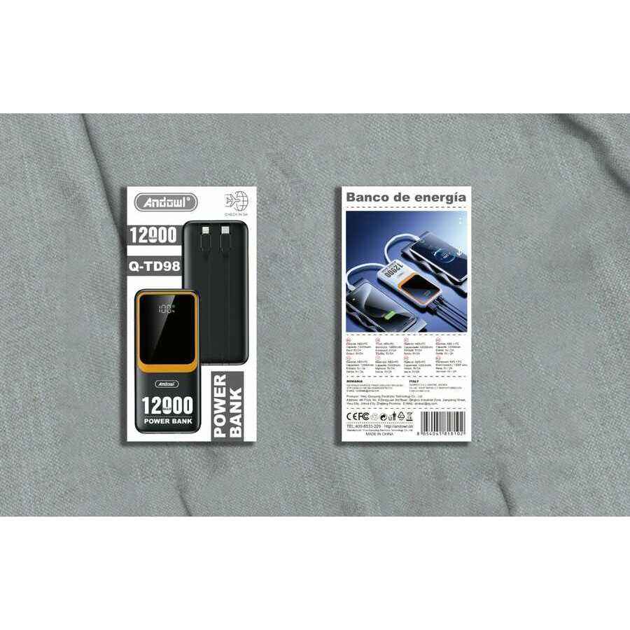 Andowl Power Bank 12000mAh Ricarica wireless Doppia interfaccia USB per telefono e laptop