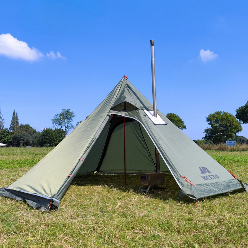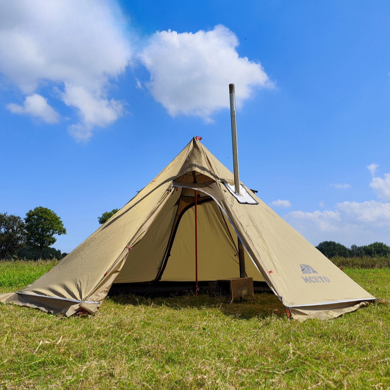 Soffitto alto inverno campeggio camino conico struttura riparo piramide esterna tenda calda sul tetto