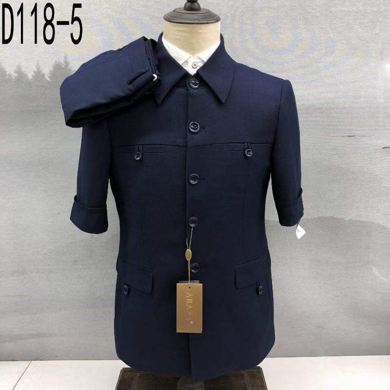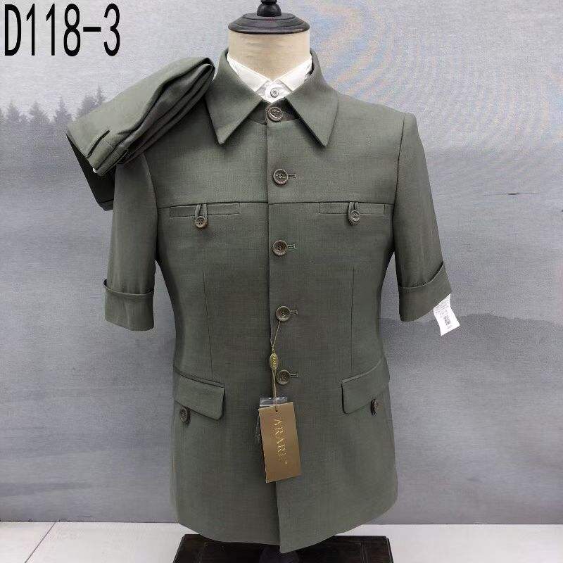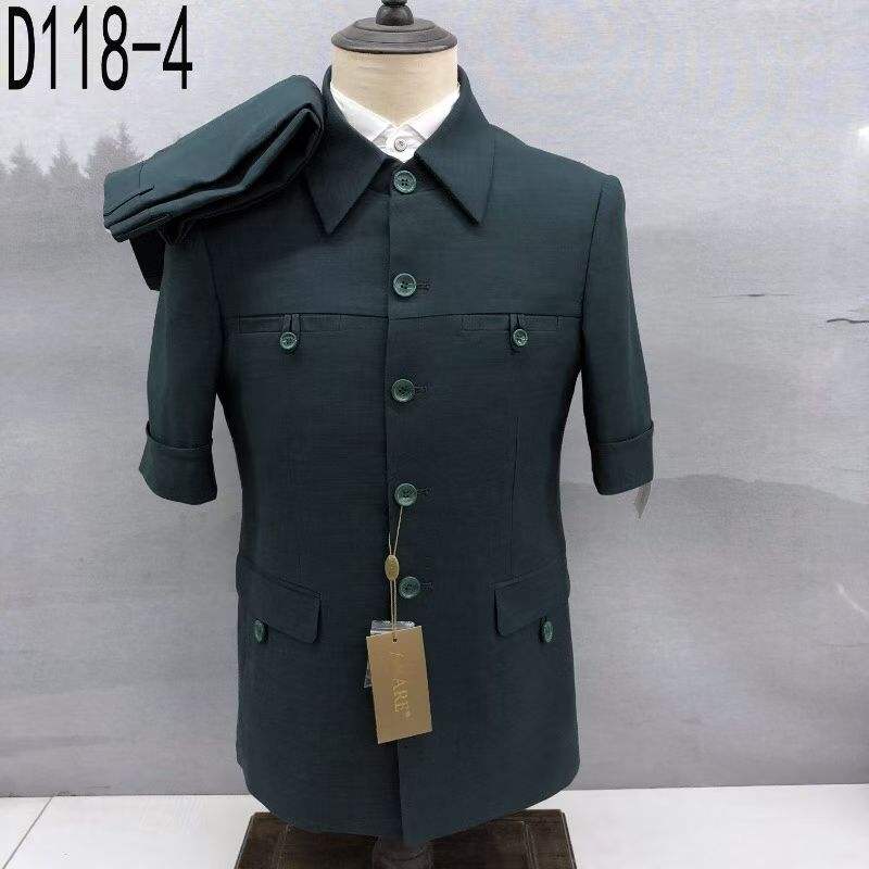Collo alto GreenTunic scuro abito da uomo Slim Fit quattro tasche Business 2 pezzi cinque bottoni smoking uomo Wedding Men abiti D118