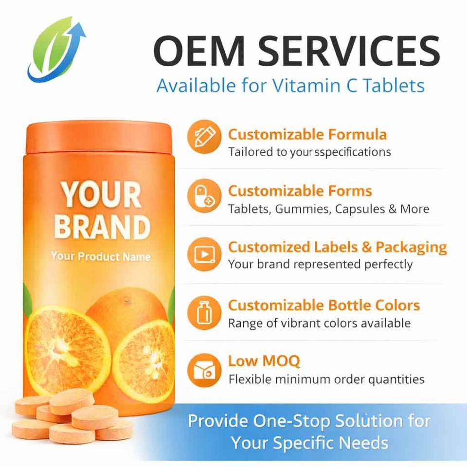 Compresse Masticabili di Vitamina C ad Alto Contenuto, Gusto Arancia, Integratore per la Cura della Pelle, Servizio Personalizzato OEM ODM, Etichetta Privata all'Ingrosso