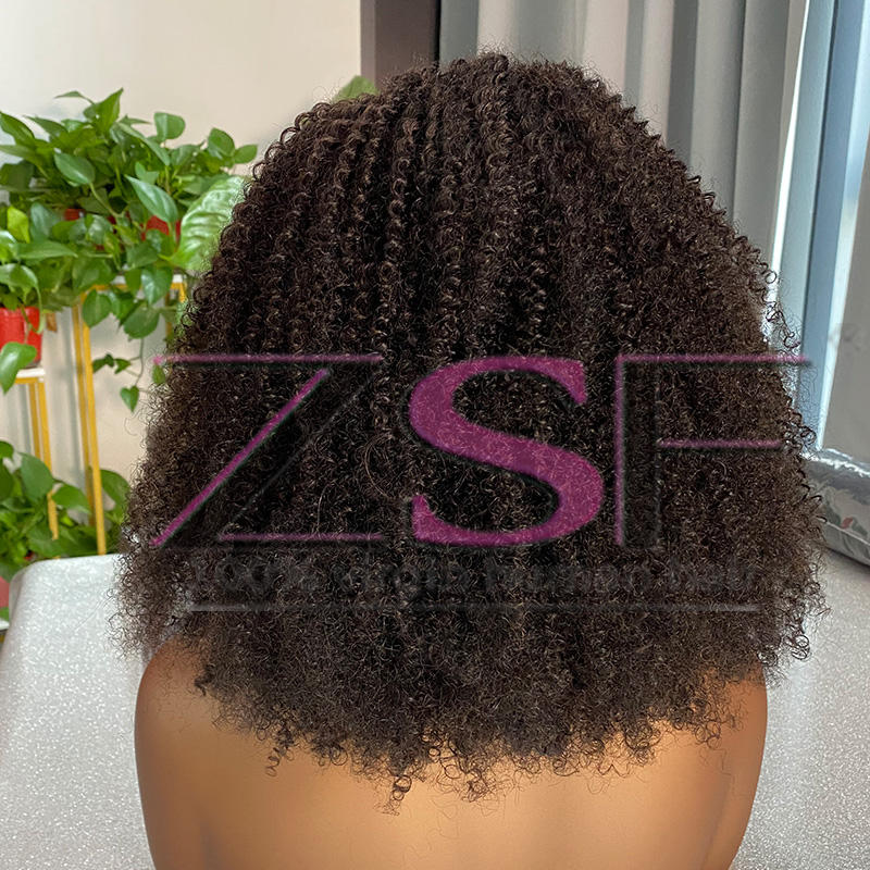 Parrucche Bob Corte Afro Kinky Ricci ad Alta Densità in Capelli Umani Vergini Indiani Grezzi, Parrucche Senza Colla per Donne Nere