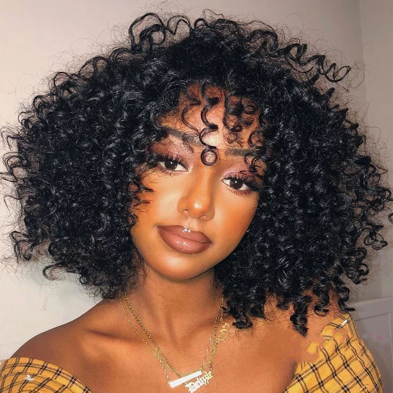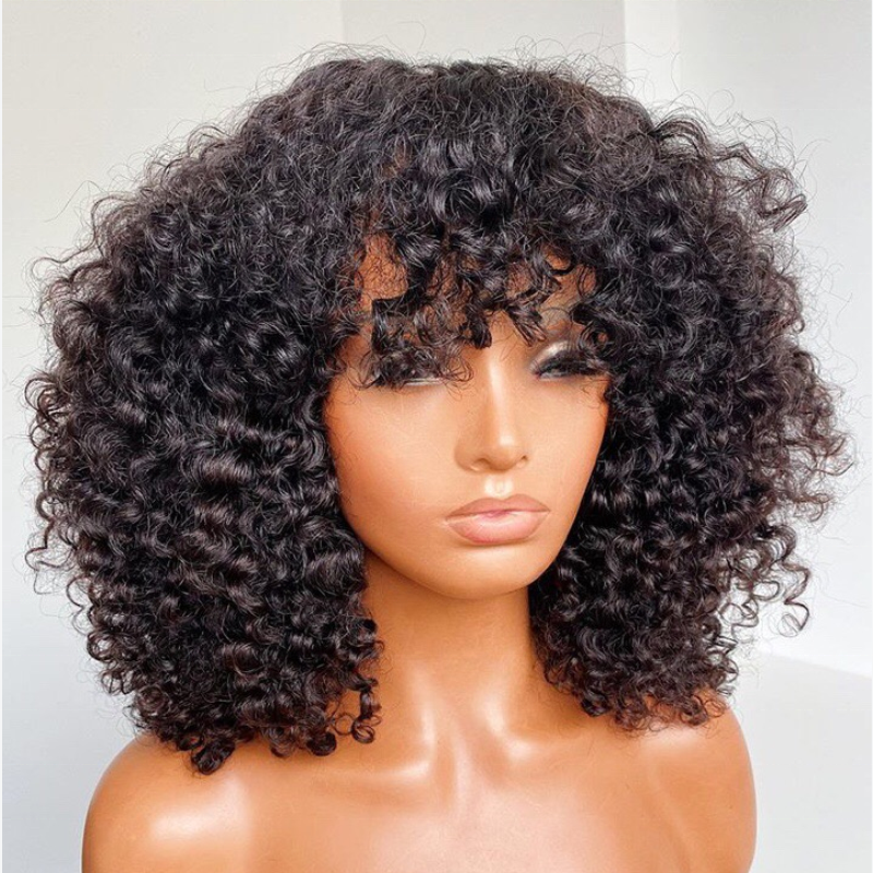Parrucca Bob Riccia Biondo Ombré ad Alta Densità con Frangia e Lace Front in Capelli Umani Brasiliani Vergini con Cuticole Allineate