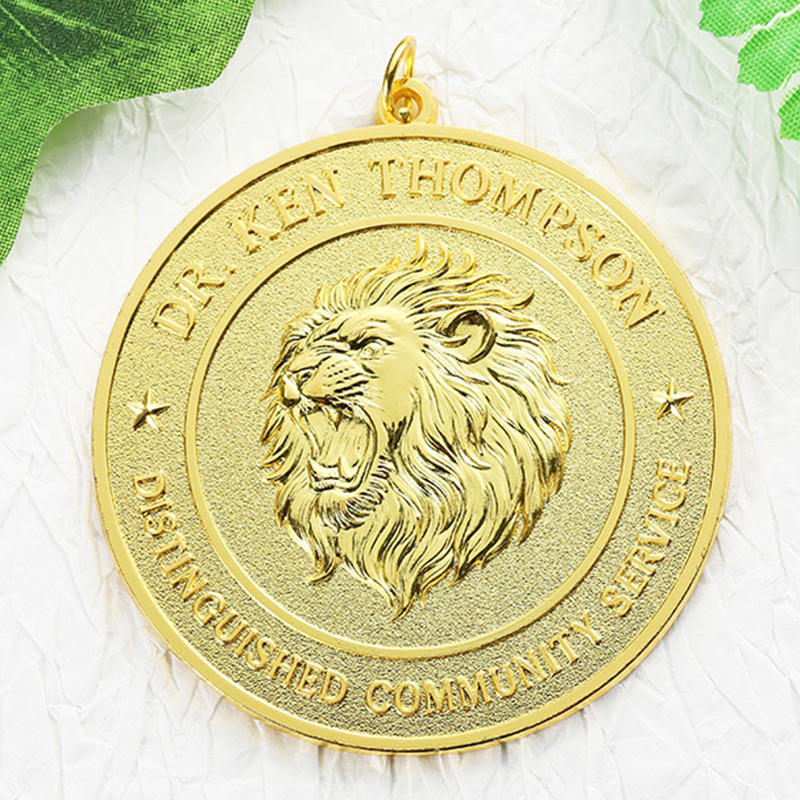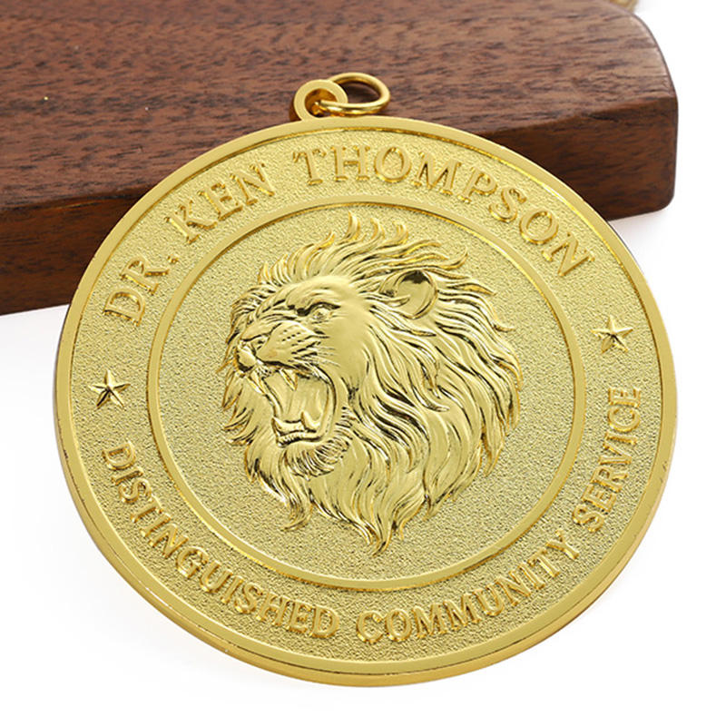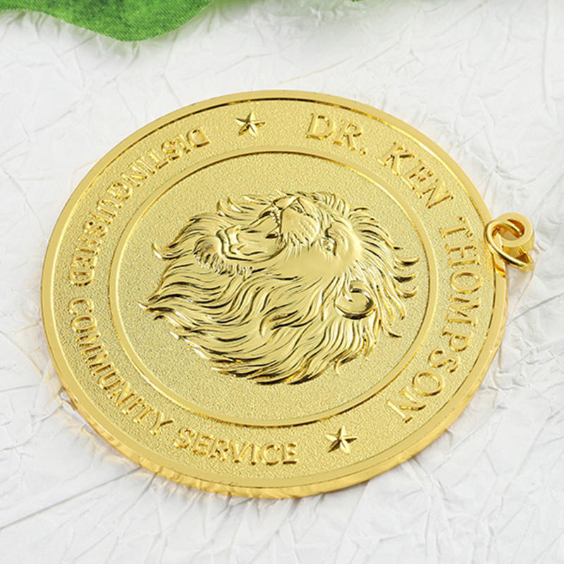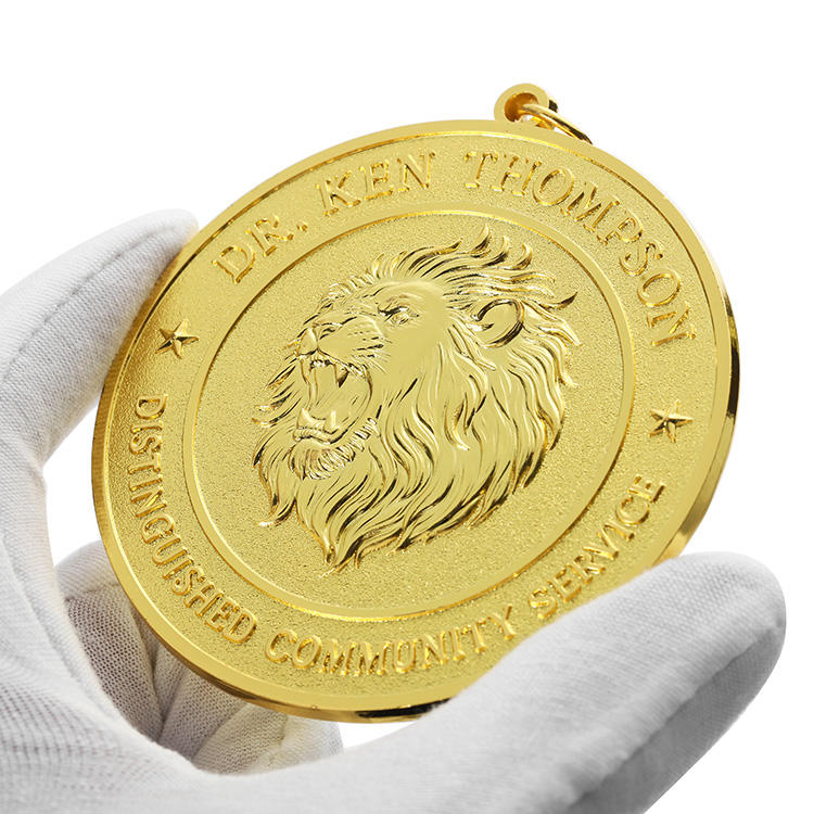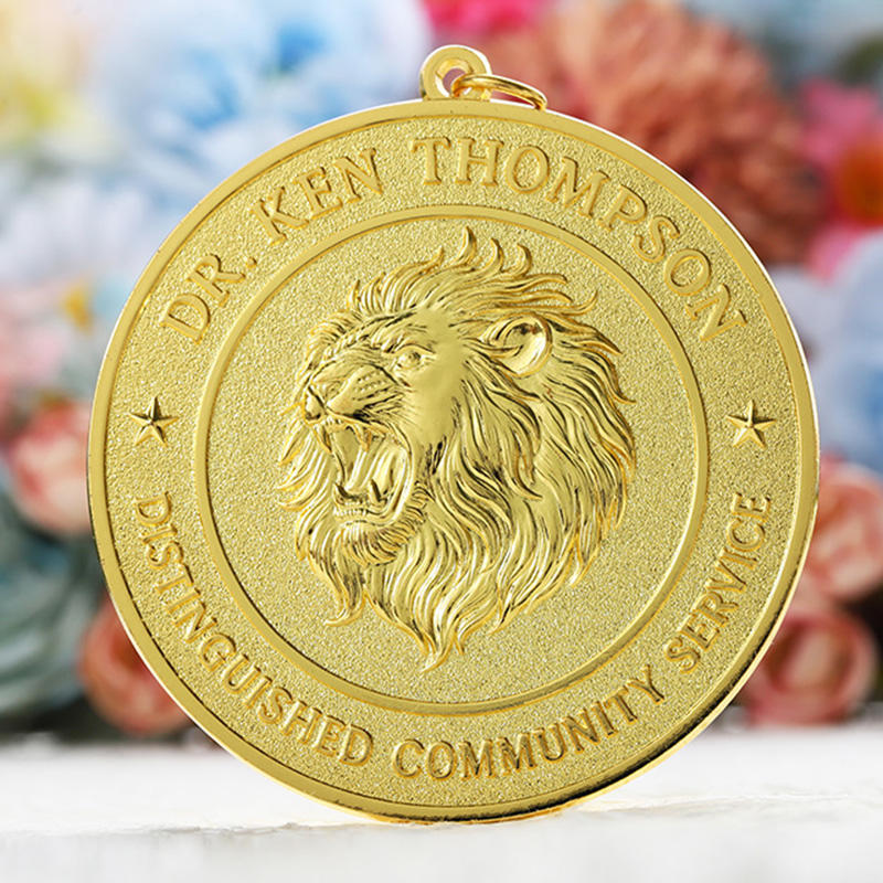 Medaglia Personalizzata con Leone in Rilievo 3D Dettagliato, Souvenir Rotondo Placcato Oro in Lega di Zinco