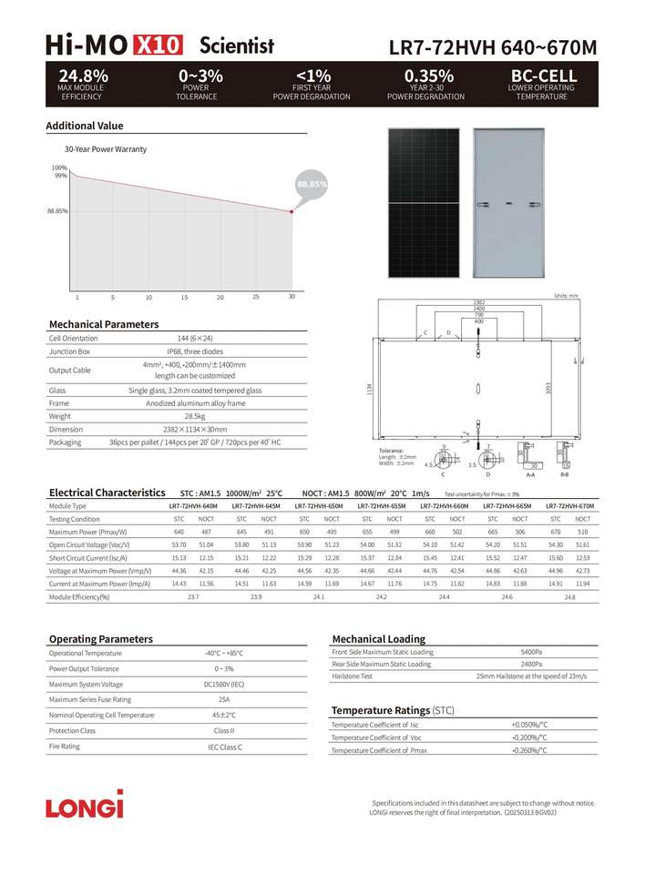 Numero del Modello:LR7-72HVH 640~670M