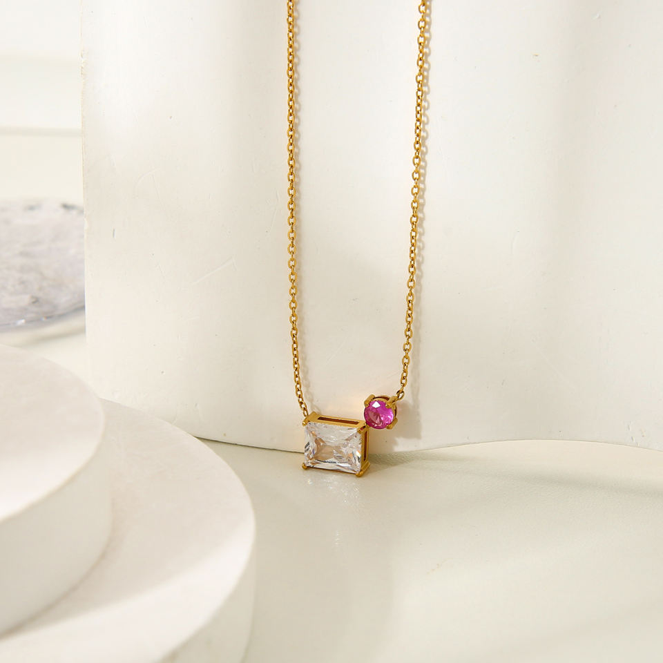 Di fascia alta 18K oro PVD Dainty Waterdrop rettangolare zircone in acciaio inossidabile con ciondolo collana impermeabile gioielli di moda