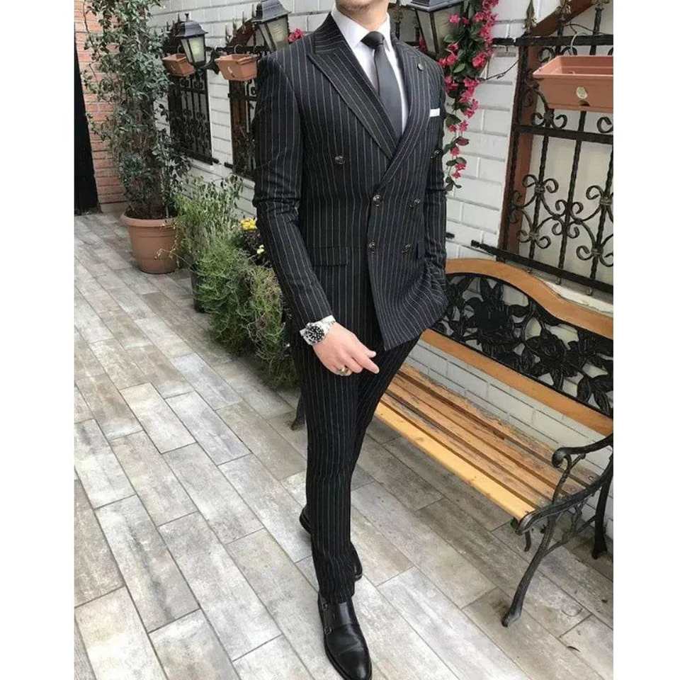 Abito da sposa da uomo di fascia alta 2 pezzi elegante in stile formale Smart Casual a righe nere con Blazer Slim per feste da sposo
