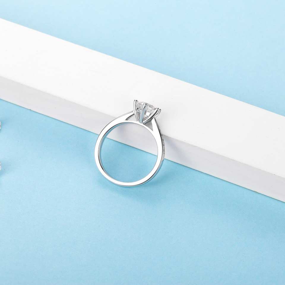Anello di Fidanzamento in Argento Sterling 925 di Alta Qualità con Moissanite, Placcato in Rodio, Design Classico Solitario