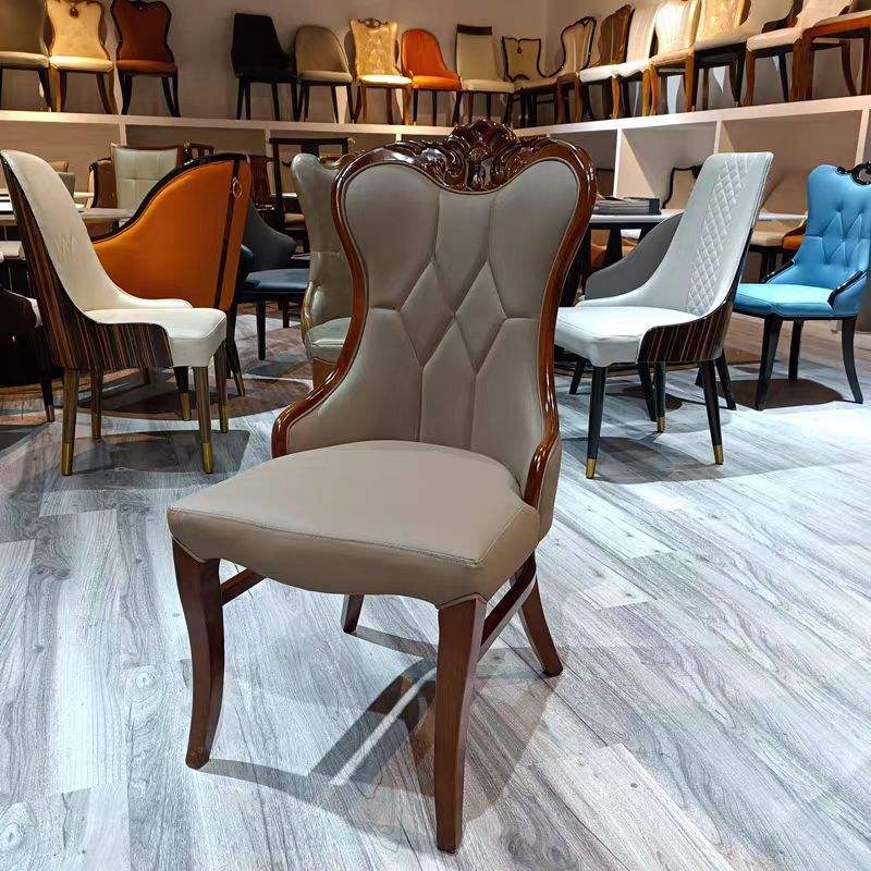 High-End americano intagliato in legno massello sedia da pranzo schienale morbido casa Hotel Box sedia ristorante Design moderno in pelle Pu sedia