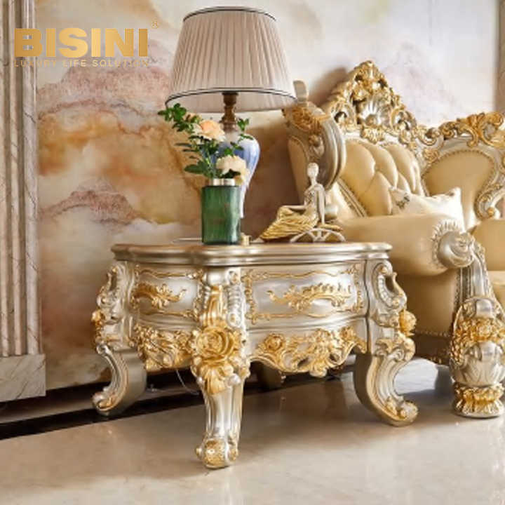 High End American Style Wooden Square End Table for Living Room Sofa Gold Leaf Carvings Coffee Table for Hotel Villa